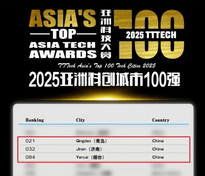 亚洲科技大赏:山东八城上榜TTTech中国科创城市100强,青济烟同步上榜亚洲科创百强