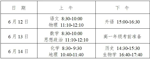 高一高二年级分科报考,9科目考试时间确定