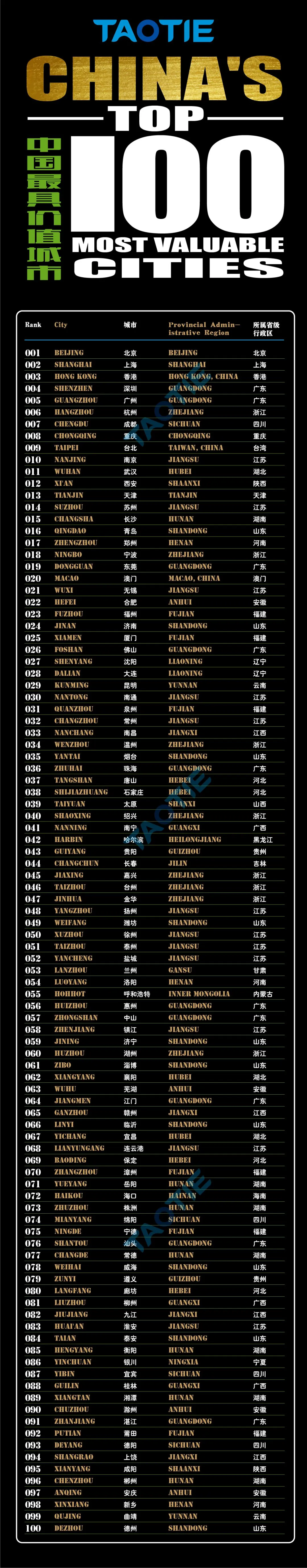 2026年度TAOTIE中国最具价值城市百强榜全榜单