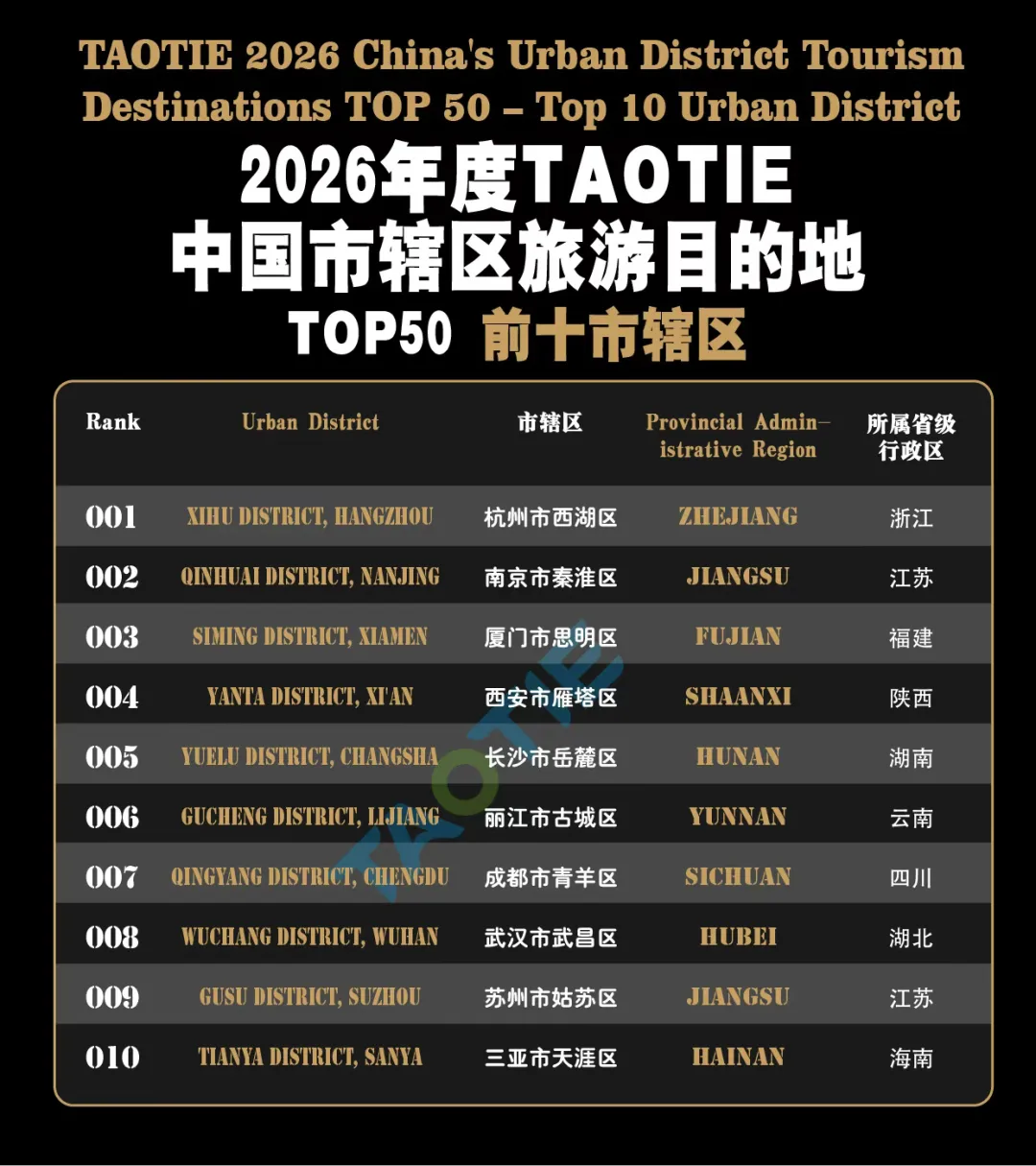 亚洲文旅大赏:2026TAOTIE中国市辖区旅游目的地榜单解读