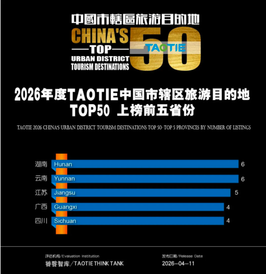 4月11日,在第二届AT ASIA亚洲文旅大赏活动现场,由澳门TAOTIE THINK TANK(饕餮智库)主导编制的2026《TAOTIE中国市辖区旅游目的地TOP50》榜单正式揭晓,五十个市辖区从全国数千个候选单元中脱颖而出,共同构成一张以"区"为单位的中国旅游精华地图。