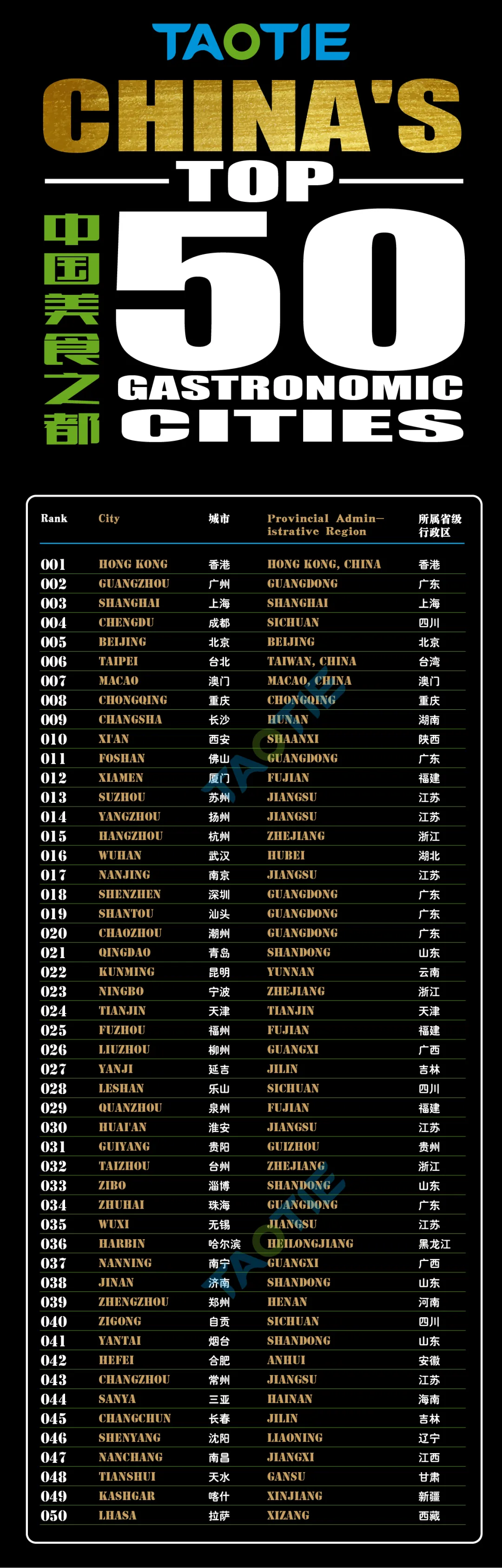 2026年度TAOTIE中国美食之都TOP50全榜单