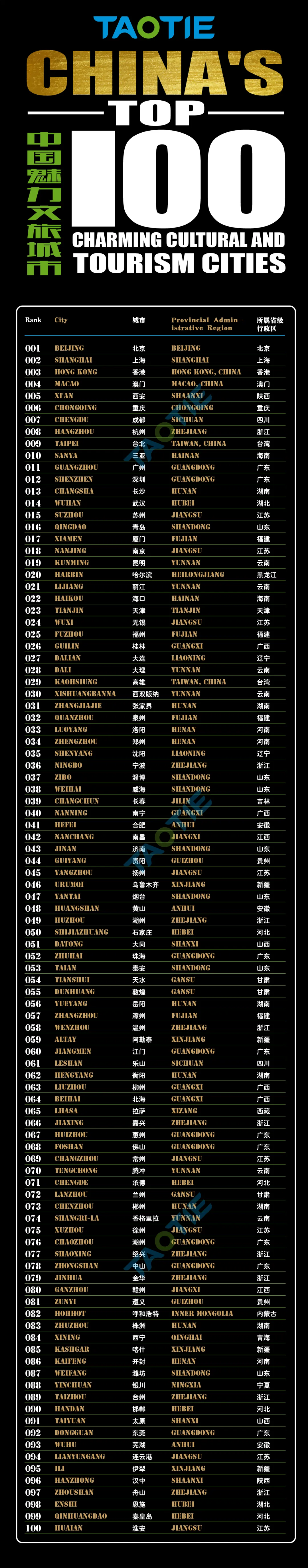2026年度TAOTIE亚洲魅力文旅城市TOP100全榜单在中国维度,最值得关注的,是几个具有明确信号意义的跃升。