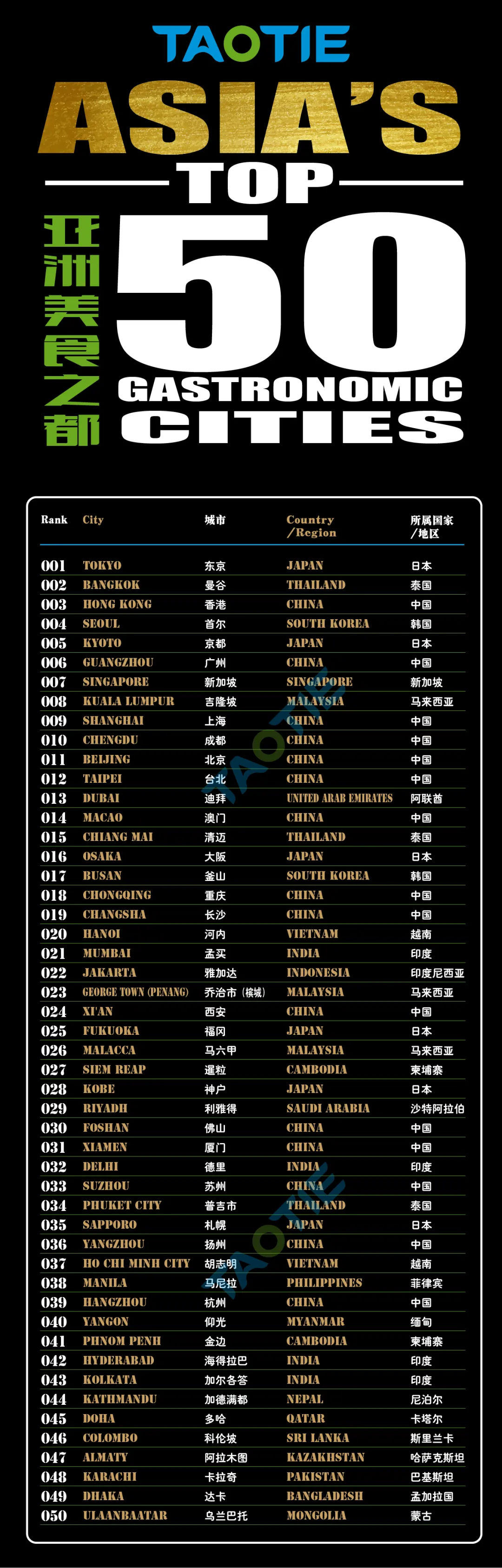 这并非某个美食纪录片的开场,而是2026年度《TAOTIE亚洲美食之都TOP50》榜单所描绘的日常图景。